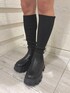 KURENA(GYDA)のブーツ「ニットドッキングボリュームソールブーツ」を使ったコーディネート