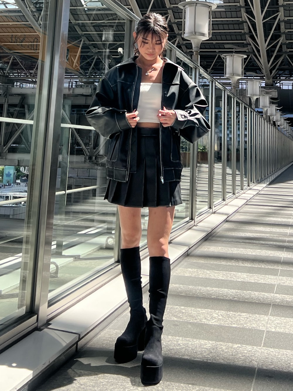発売前から大人気なセットアップが再入荷です😍😍😍 【ブルゾン】 オーバーなサイズ感ですが裾と袖がキュッと締まってるのでメンズっぽくならずにレディースの可愛さと綺麗さを残して使って頂けるアイテムです🤭🤭 横から見た時の膨らんだシルエットがお尻もカバーしてくれて360°可愛く見せれちゃいます🤍 【スカート】 今期トレンドのプリーツスカート👗 気になってるけど可愛くなりすぎるのが嫌!って方にはとてもオススメのアイテムです😳 レザーの素材感でかっこよく見えるのはもちろん、生地感がしっかりしてるからヒラヒラしなくて甘すぎないプリーツスカートになってます🍃 👗162cm:Sサイズ着用👗 【ブーツ】 毎年大人気のロングブーツが発売されました🥹 ストレッチが効いていて細見え効果が抜群です! 着圧ソックスのように履いていただけて、膝下の丈なのでブーツの上にお肉が乗ってしまう心配がいりません🥹 🥾162cm:Lサイズ着用🥾