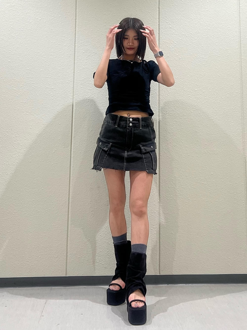 【トップス】 見たのことない形のTシャツ😳👕 レイヤーのデザインになっててシンプルなのに個性が出せる優秀ちゃんです🩷🩷🩷 生地感もストレッチが効いているタイプでコットン素材だからこれからの暑い季節にもってこいな1枚ですっ❗️🥹💗 【スカート】 デニムのスカートは甘くなりすぎず着れるからミニ履きたいけどフリフリは苦手💧って方におすすめです😌🧡 ウエストが大きめでローライズで履ける形なのでお腹綺麗に見せてくれるのと丈感がしっかり短めだから脚長効果も抜群です😍✨ 👗163cm:Sサイズ着用👗 【サンダル】 こんな形のサンダル見たことあります⁉️ 夏場、ミニ履く時普通のサンダル合わせると露出感強くてなんかしっくり来ない💦ってなる時はこのサンダルです‼️ 長めの丈感でふくらはぎも綺麗に見せてくれるしヒールも太いから歩きやすいです😏💛 少しサイズは大きめだから普段よりひとつ下げてもいいかも⭕️ 👡24.5cm:Mサイズ着用👡 【靴下】 つま先が開いていてサンダルの良さ潰さずに肌の露出感調整出来るのでサンダル履く人は絶対1足は持っておくべきですっ❗️😜