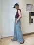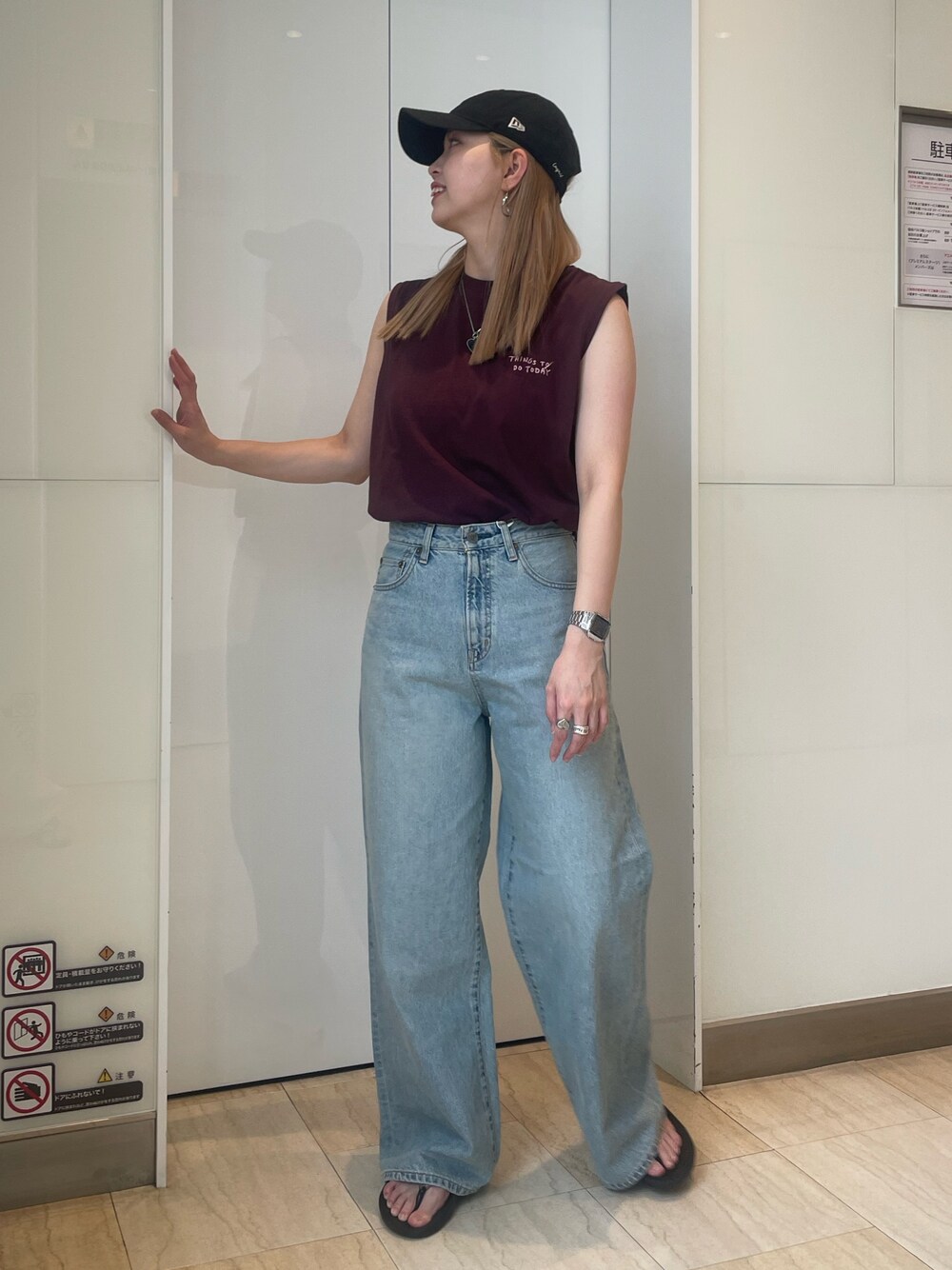 ヴィンテージルーズワイドデニムを使った これから沢山着たいコーデ♡ トップスの手描き風の刺繍が可愛いポイント! カラーがチョコレートのようなブラウンで 他と違うカラーが可愛いです💗 ノースリのトップスは肩や二の腕が気になること多いですが、これは肩幅が41cmと少し広めなので、肩と二の腕を程よく隠してくれて気になりにくかったです😌 デニムは162cmで25inchで、ずるっと履ける丈感です。ペタンコサンダルの場合は24inchのほうが良さそうでした!