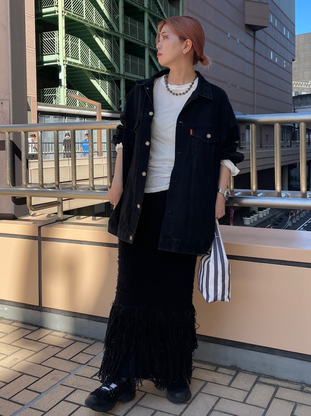〇ジャケット #ビッグシルエットデニムジャケット 定番アイテム! やっぱりこのビッグシルエットが可愛いです! ブラックは落ち着いた印象でかっこよく着れるので、スカートなどと合わせる時使いたくなります!ブルーのデニムだとカジュアルになりすぎるという方はブラックがオススメです! 〇スカート #フリンジニットスカート ウエストは総ゴムで履きやすかったです! 足元のフリンジのデザインが可愛く、目を引くアイテムです! 腰周りはフィットするので、腰周りやモモの張りが気になる方は、ビッグシルエットのトップスと合わせてあげるとバランスよく着れます! 裏地がついてるので、透け感などは心配なく履けます! フルレングスで履くために、いつもよりやや低めの位置で履いてます! ウエストの1番細い部分で履くと、足首が見える程の丈でした。