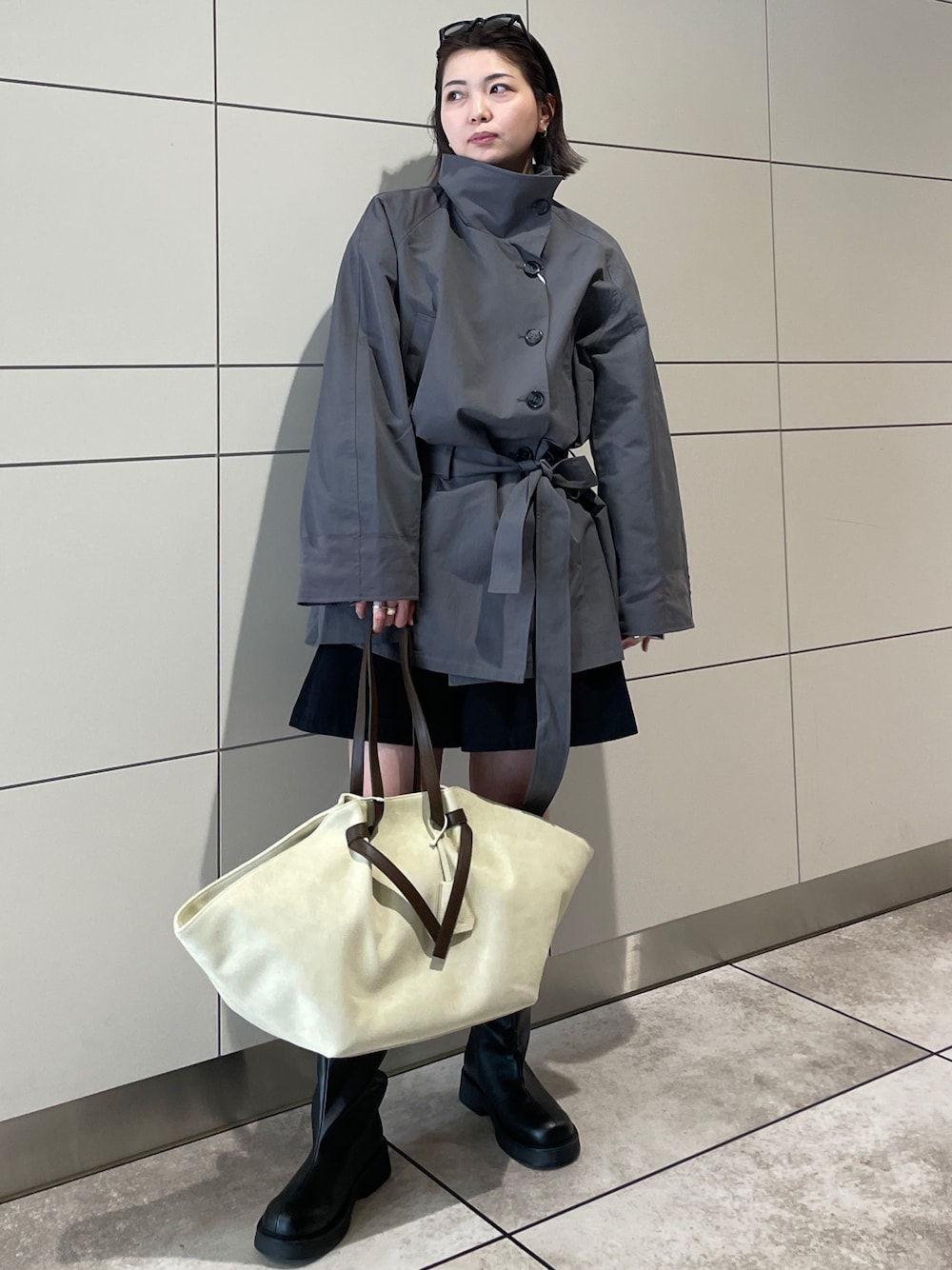 佐藤薫(Ungrid)のトレンチコート「スタンドカラーミドル丈トレンチコート」を使ったコーディネート