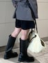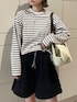 〇アウター #スタンドカラーミドル丈トレンチコート 程よくコシのある生地感が立体感を出してくれて高みえします!ウエストのベルトを縛ることでより動きが見えて可愛いです🌱 〇インナー #マルチボーダーロングスリーブtee 生地がしっかりしてて着心地いいです! 身幅がルーズなのでゆったりとしたシルエットも可愛い🤎 ボーダーが2色以上の色が使われてるので、メンズライクになりすぎず着れるのが嬉しいポイントです✨ 〇ボトムス #レイヤードデザインハーフパンツ ウエストにデザインがあり、1つでオシャレになるハーフパンツです! フレアな形なので足が細見えしてくれます😌 〇ブーツ #ボリュームロングブーツ Lsize(やや大きめだったので、Mでも履けます) いつもは24cm履いてます。