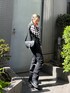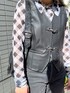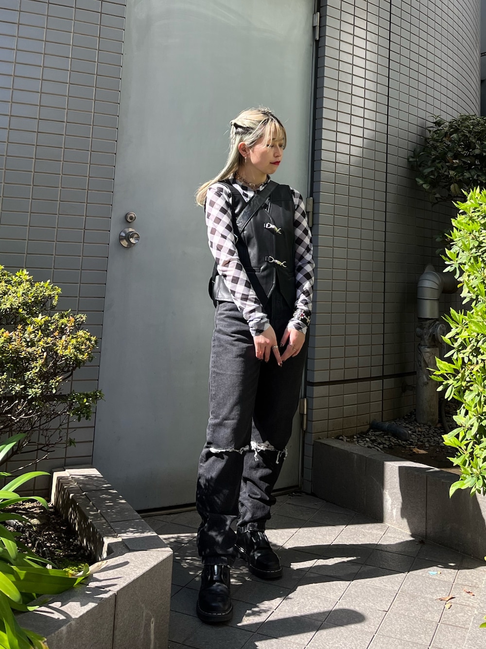 モノトーンでかっこいい系にキメようと思ったので レザーのベスト×ブラックデニムに☝️🖤 シャツはシアーなので真夏直前とかまでは絶対に着れちゃう🫶