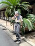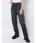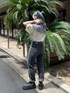 ラインストーンデニムはストレートパンツですが、履くと綺麗なシルエットで脚長効果も出せるアイテム!! 153cm Sサイズでロールアップしなくてもシューズ履けばギリギリ擦らない丈感です! BIGカラータックワンピの襟を使ったらカジュアルコーデが一気にガーリー要素プラスで!
