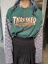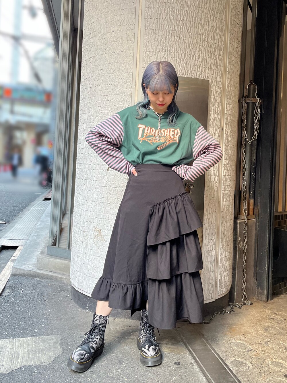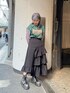スカートは153cmで厚底履かなくても擦らない丈感!! スポーティーMIXがトレンドなので トップスはロンTでスカートはフリルの甘めテイスト合わせ◎!