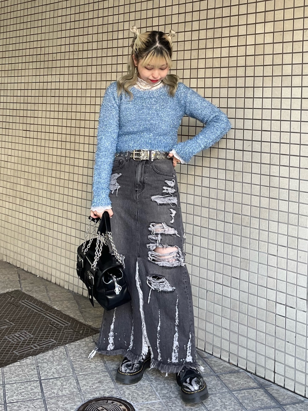 【トップス】 クロップド丈のアイテムですが、153cmでハイウエストのボトムと合わせるとちょうど丈感が被るので普段あまりお腹見せしない方にもおすすめ!◎ あまり背中見せしたくない、、と言い方はシアーのトップスやレースのアイテムを入れてあげるとトップスの雰囲気を崩さず可愛く着こなせちゃいます♡ 【ボトムス】 スカートはかなりロング丈なので低身長さんには厚底必須、、!! ダメージ加工の部分は際どくないところで終わっています!◎