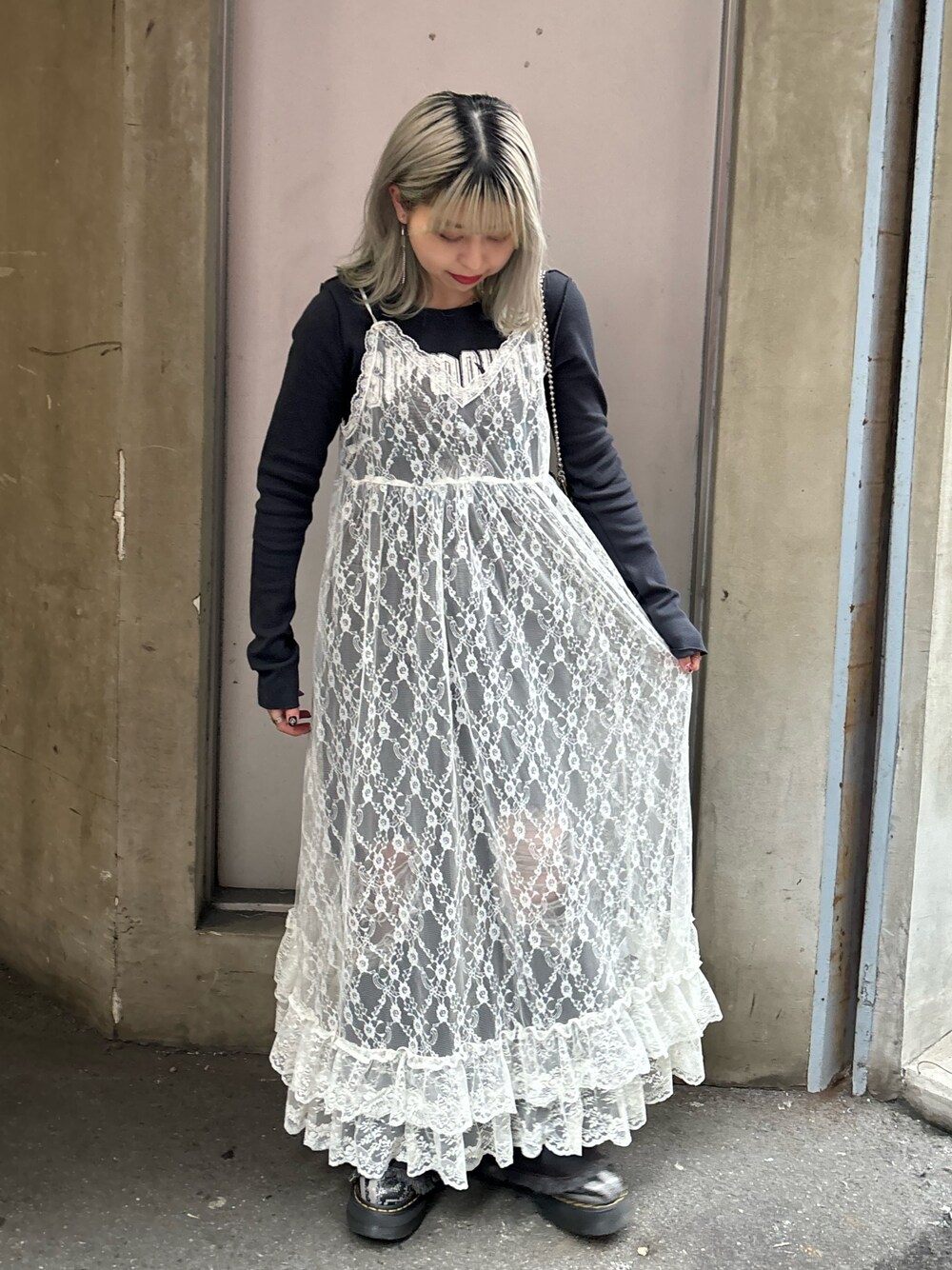 KAGARIのワンピース「レースキャミワンピース」を使ったコーディネート