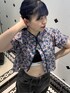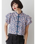 【トップス】ショルダーフリルチャイナSH半袖 大人気だったチャイナシャツの半袖バージョン! 丈感も前回と同じでおへそにかかるぐらいです!♡ 前開けでサラッと夏っぽくカジュアルに着ても、 前閉めてキレイめ系に着ても◎!