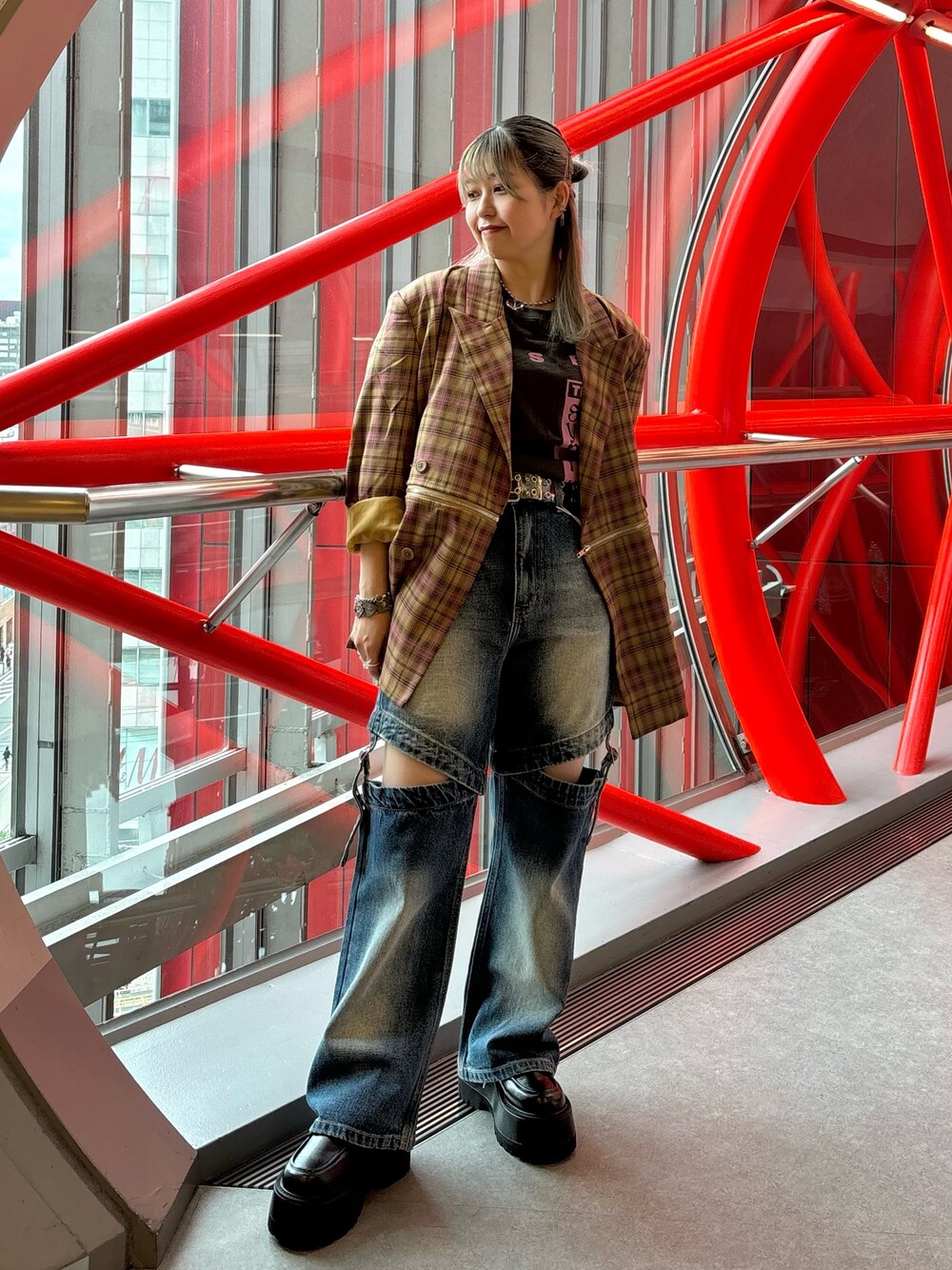 【トップス】 153cmでおしりがすっぽり隠れるぐらいオーバーなサイズ感! でもサイドにスリットが入っているのでダボダボしすぎない見た目でワンピ風に着ても、 スリットからボトム見せしても◎! 【ジャケット】 オーバーでもクロップド丈でも着られるサイズ感♡ クロップド丈にするとワンピースの上から羽織ってもバランスよく着て頂けます!! 【ボトム】 大人気すぎて再入荷したアイテム!! 普段脚だししないという方にも挑戦してもらいやすい少しだけの見せ感! 153cmでSサイズ着用してスニーカーだとギリギリな丈感でした! 3cm以上の厚底なら擦らずに履いて頂けます!! 【シューズ】 脚激盛れな厚底シューズ♡ 軽い素材感を使っているので1日歩いても疲れにくい! 普段マーチン24cm(UK5)を履いていてMサイズがジャストで 少しゆったり目に履きたい方にはLがおすすめ!★