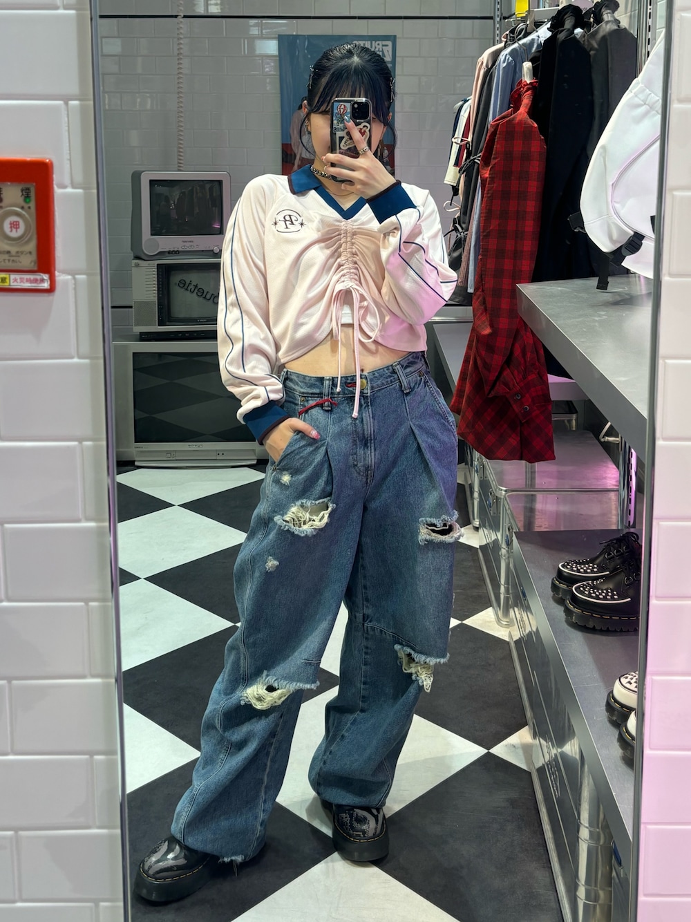 KAGARIのデニムパンツ「【Something ×PosTokyo】PANEL BALLON WIDE DENIM」を使ったコーディネート