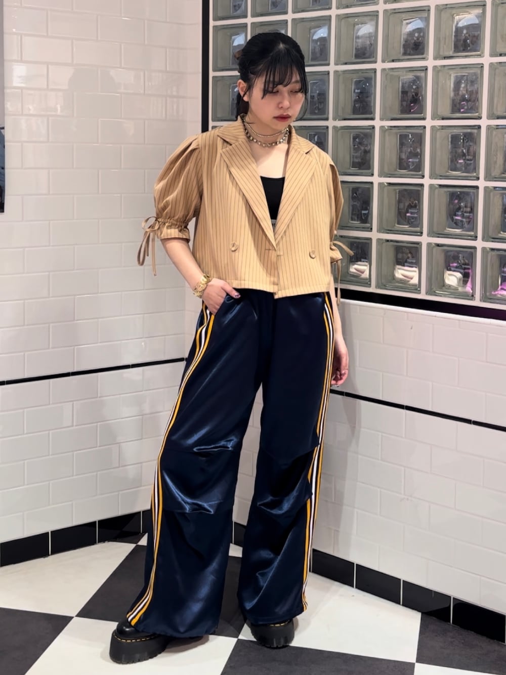 KAGARIのその他パンツ「サイドラインサテンパンツ」を使ったコーディネート