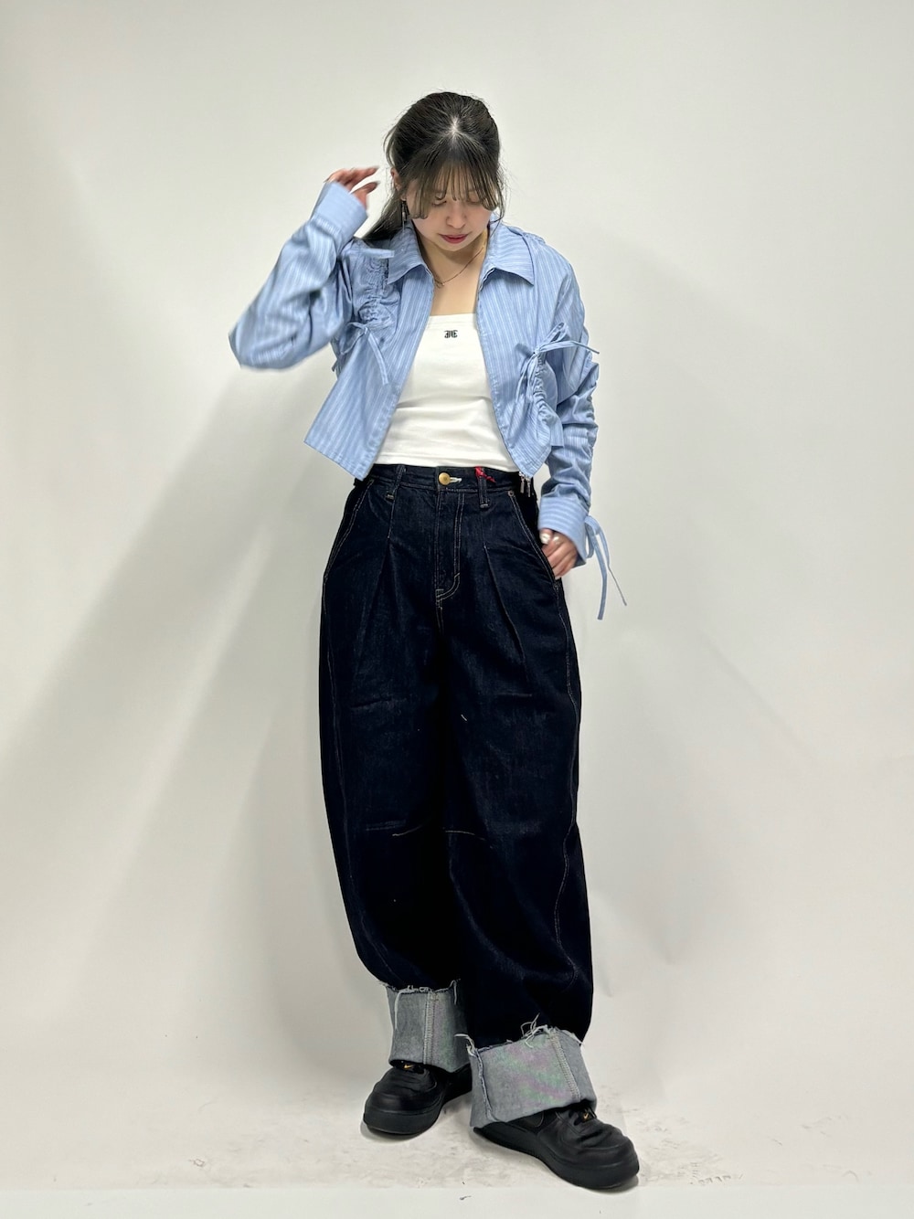 KAGARIのデニムパンツ「【Something ×PosTokyo】PANEL BALLON WIDE DENIM/パネルバルーンワイドデニムパンツ」を使ったコーディネート