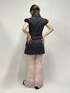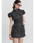【ワンピース】 ワンピ着でも前のZIPを開けて羽織着でも◎! フレアパンツやスキニーパンツであれば前を閉めた状態でもゴワゴワしすぎず着やすいです♡ 伸縮性はあまりありません× 【ボトムス】 153cmで厚底ではないスニーカーでギリギリ擦る丈感だったので、厚底を履いてもらうと低身長さんでも◎! フィット系ですがゆったり目に作られていて、横に入っているラインはゴムで縛っているだけなので伸縮性も◎!