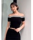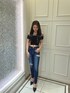 <キレイめカジュアルデニムコーデ> 【トップス】オフショルとしても着用出来る2wayトップス✨サイドにラインがあるので細見え効果抜群です♡ 【ボトムス】GYDA定番のダメージデニム✨高めの位置にダメージがあるので脚長効果も抜群です♡ミドルウエストなどでショート丈トップスと合わせても可愛いですが、インしやすい深さなのでトップスインして着ていただくのもおすすめです✨ 【シューズ】GYDA定番アイテムのポインテッドミュール✨足がキレイに見えるように拘って作られているのでどんなパンツに合わせて頂いても相性抜群です!私は23.0でMサイズ着用してます♡