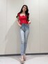 <キレイ目カジュアルコーデ> 【トップス】胸元のリボンがポイントのトップス✨サラッと軽いテレコ素材でフレア感を出してます!肩のフレア部分が肩幅カバーもしてくれます! 【ボトムス】セクシーなデニムが登場✨ウエストにデザインがあるので、フロントファスナーになっておりスッキリとしたシルエットです!ハイウエストなのでミニ丈のトップスと合わせるのがおすすめ✨ 【シューズ】毎年大人気のコルクサンダルが今年も登場✨ヒールは11cmですが、高低差が少ないので本当に楽に履いていただけます♡ヒール苦手な方なども挑戦していただきやすいと思います!