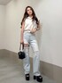 <デニムでカジュアルコーデ> 【トップス】ノースリーブパーカーが今年はトレンドのハーフZIPデザインになって登場!お好みで胸元を開けていただけます✨フード先にsquare gydaロゴが刺繍されておりさりげないポイント♡ 【ボトムス】大人気サイドリップドペグトップデニムパンツのストレートワイドデニムが新登場。 太もも部分のダメージがGYDAらしさを出してくれます! 【シューズ】去年大人気だったチャンキーサンダルが今年も登場✨これ履くだけでスタイルアップ効果♡太めのヒールだから安定感もあって楽に履いて頂けます!着脱もしやすいデザインです!