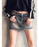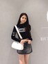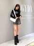 <デニムスカートでカジュアルコーデ> 【トップス】レーサーデザインニット♡ロゴが胸元と腕に施されているのがポイント✨ボトルネックだから首元が詰まりすぎていないのでタートルが苦手な方でも挑戦して頂きやすい1枚です✨ 【スカート】ヴィンテージ感がある新作のデニムスカート✨ミニ丈ですが中にショートパンツが付いているので安心して履いて頂けます♡季節問わずオールシーズン使えるので1枚あれば色々なコーディネートができます! 【シューズ】今年のワークブーツはウェッジソールデザインになって登場✨厚底で美脚効果バツグンなのにとっても歩きやすく安定感もあり、ヒール苦手な方でも挑戦しやすくなってます♡普段23.0の私はMサイズでぴったりでした!