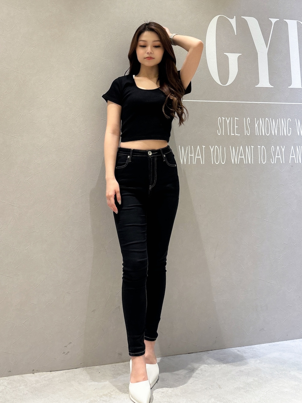 【トップス】 大人気のレオパードトップスからハーフスリーブが登場✨後ろのリボンがレオパード柄になっており後ろ姿も可愛くしてくれます!深めのUネックがデコルテをスッキリ見せてくれます! 【ボトムス】 GYDA定番のワンウォッシュスキニー✨とっても伸縮性がありストレッチが効いているのでレギンス感覚で履いていただけます⭐︎サイズはXXSからLサイズまであります♡私はXXSサイズを着用してます! 【シューズ】 GYDA定番のポインテッドミュールに、ストームをプラスし、より高低差や安定感をアップさせたアイテム。高低差があまりないのでピンヒールでもより履きやすくなりました!23.0cmの私はMサイズでピッタリでした!