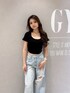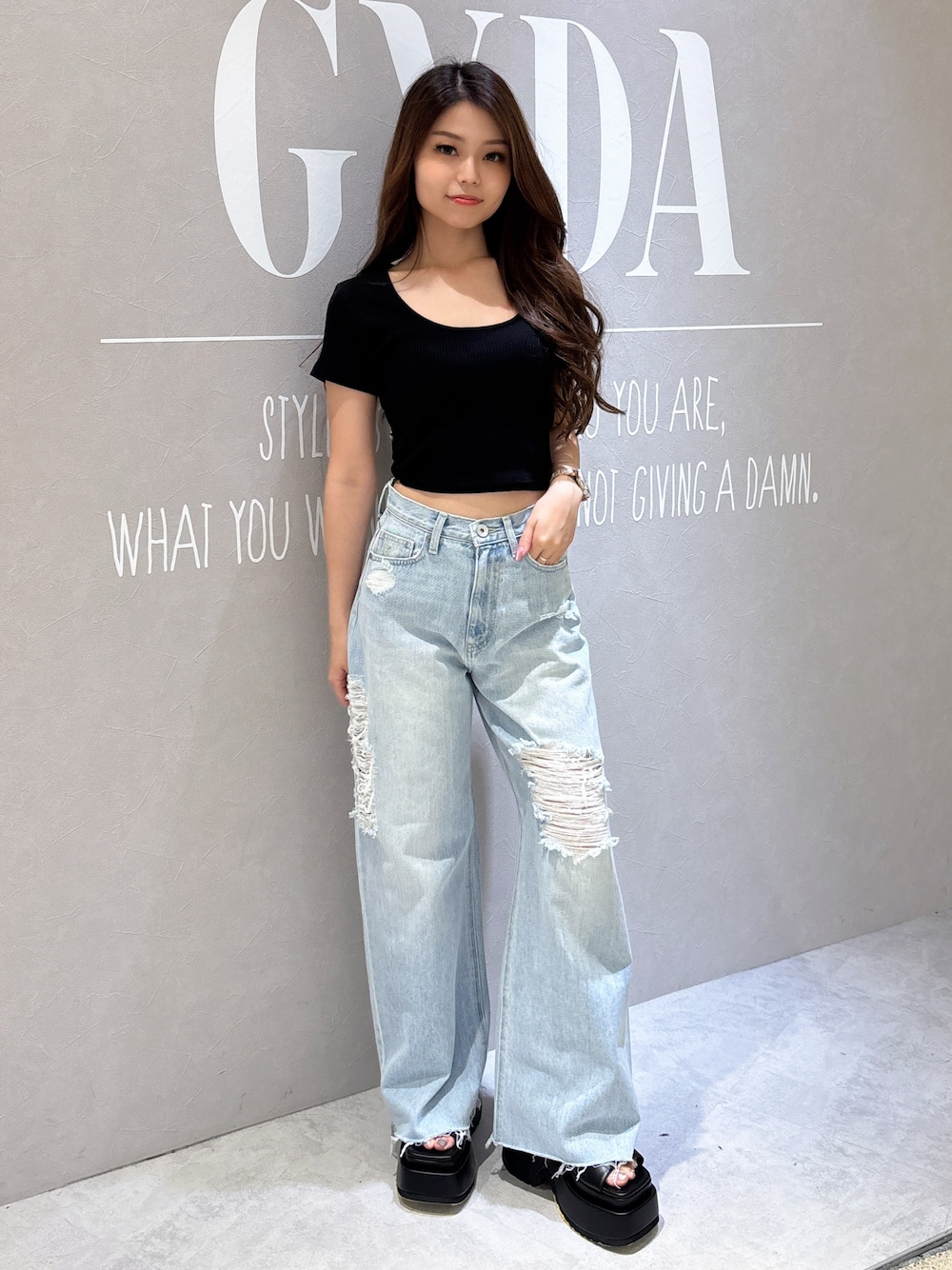 【トップス】 大人気のレオパードトップスからハーフスリーブが登場✨後ろのリボンがレオパード柄になっており後ろ姿も可愛くしてくれます!深めのUネックがデコルテをスッキリ見せてくれます! 【ボトムス】 新作のワイドデニム! ゆったりとしたシルエットでダメージ位置は高めになっており、脚長効果を出してくれます! 身長157cmの私はSサイズで着用してます! 【シューズ】 高低差がない厚底サンダルの為、とても楽に履けてヒールが苦手な方にも挑戦していただきやすいです!軽量の快適な履き心地と、スタイルアップ効果を両立した一足で、履くだけで美脚に見せてくれます! 23.0cmの私はMサイズでピッタリでした!