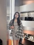 【トップス】 ビジュー付きのチェックシャツが登場✨ ゆったりとしたサイズ感で、体型カバーもしてくれます!季節問わず、デイリー使いしやすい一枚です! 【ワンピース】 毎年人気のGGプレートシリーズからワンピバージョンが発売されました✨ 丈感も短すぎず、長すぎずでスタイルアップしてくれます♡タイトシルエットなので身体のラインも綺麗に見えます! 【シューズ】毎年大人気の盛れるショートブーツが今年も登場♡細身に作られているので美脚効果はもちろん、足をしっかりと固定してくれて安定感があります✨本当にこのブーツ履くだけでー5キロになれます!普段23.0cmの私はMサイズでぴったりでした!