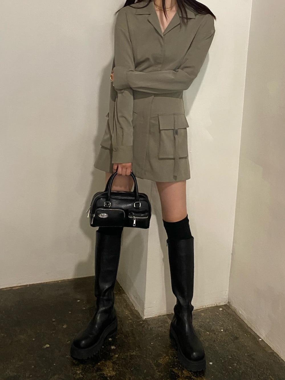 内藤和香(EMODA)のハンドバッグ「スタンプロゴアウトポケットバッグ」を使ったコーディネート