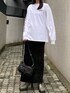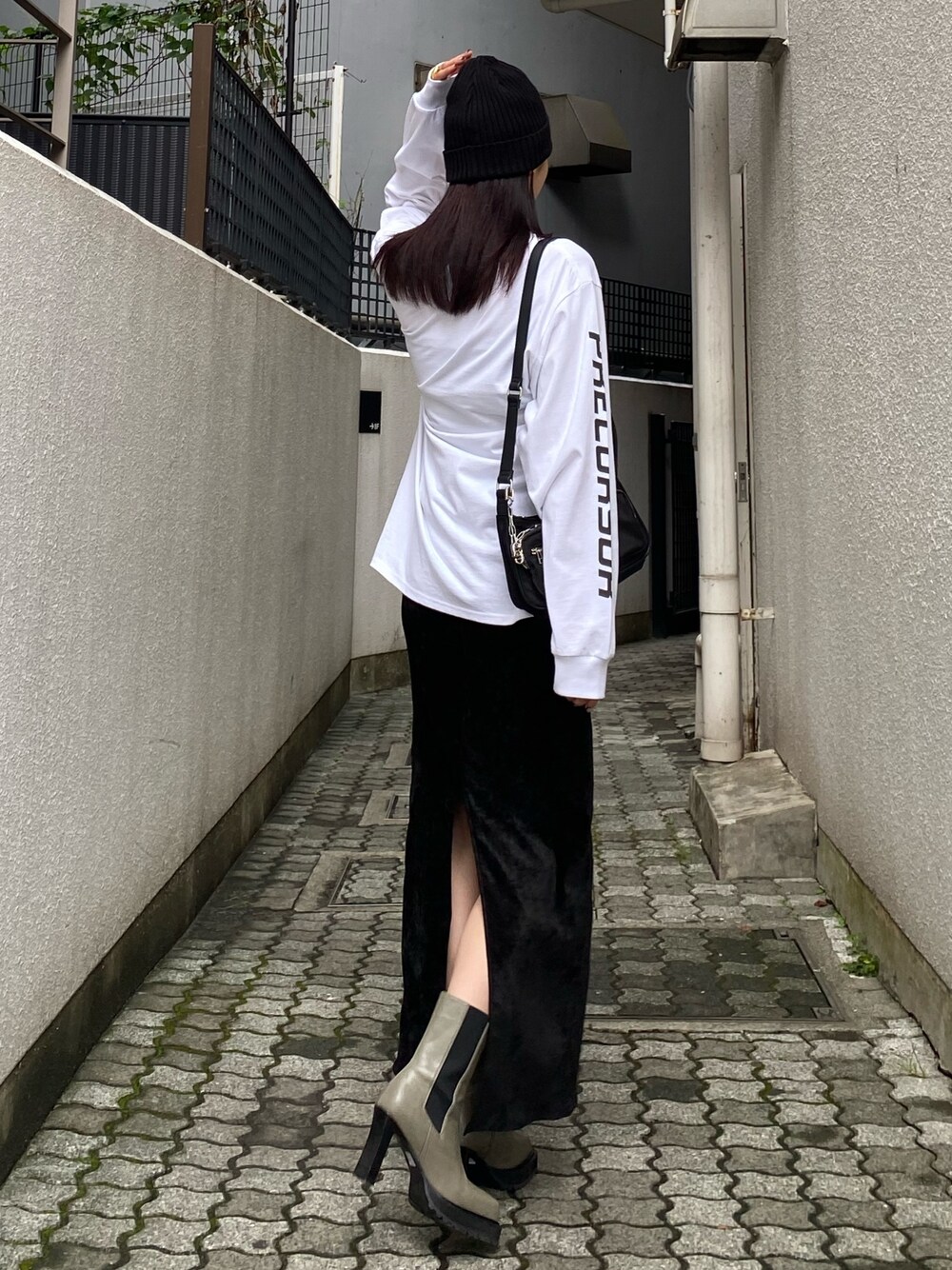 秋におすすめカジュアルコーデ!スカートはロングですが深めのシルエットが入っているので動きやすくて履きやすいです。ロンTと合わせてカジュアルに着るのがこれからの時期におすすめです!