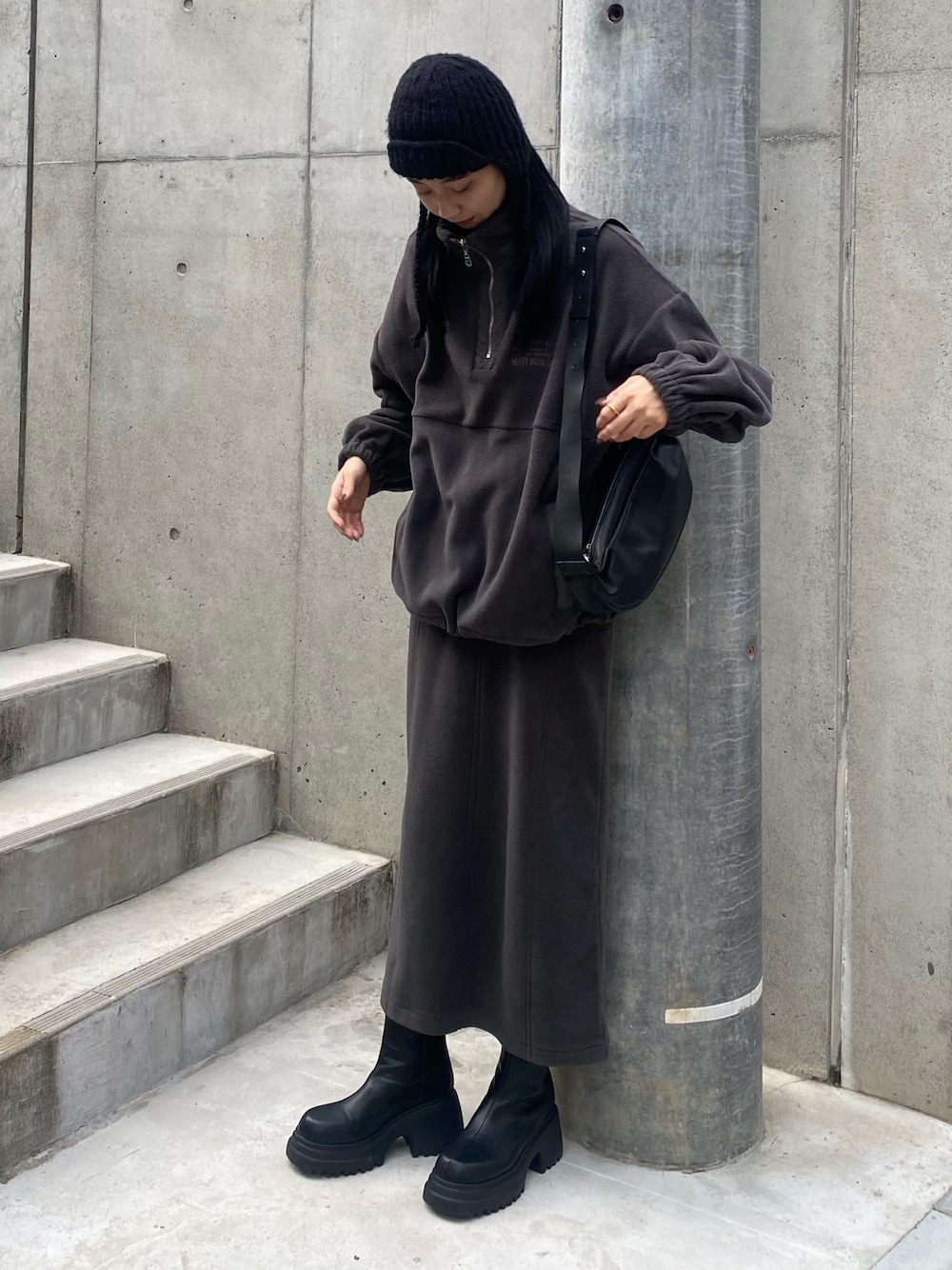 内藤和香(EMODA)のスカート「【VEQUM】FLEECE MAXI SKIRT」を使ったコーディネート