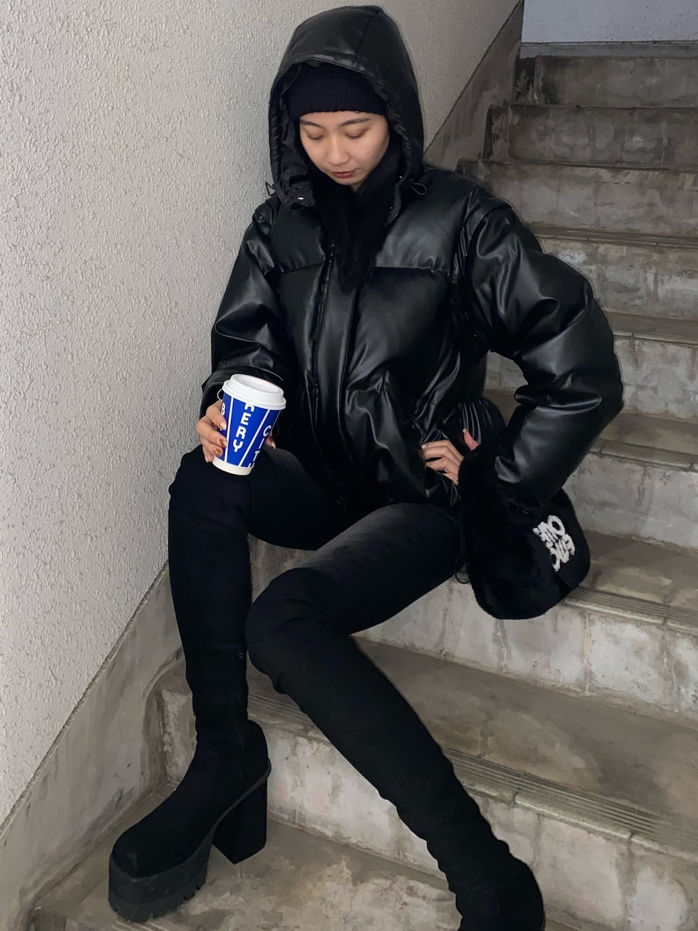 内藤和香(EMODA)のブルゾン「2WAYオーバーフードダウン」を使ったコーディネート