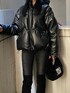 袖の取り外しができる2WAYのフードダウン。レザーの素材が今年らしくておすすめです。