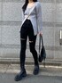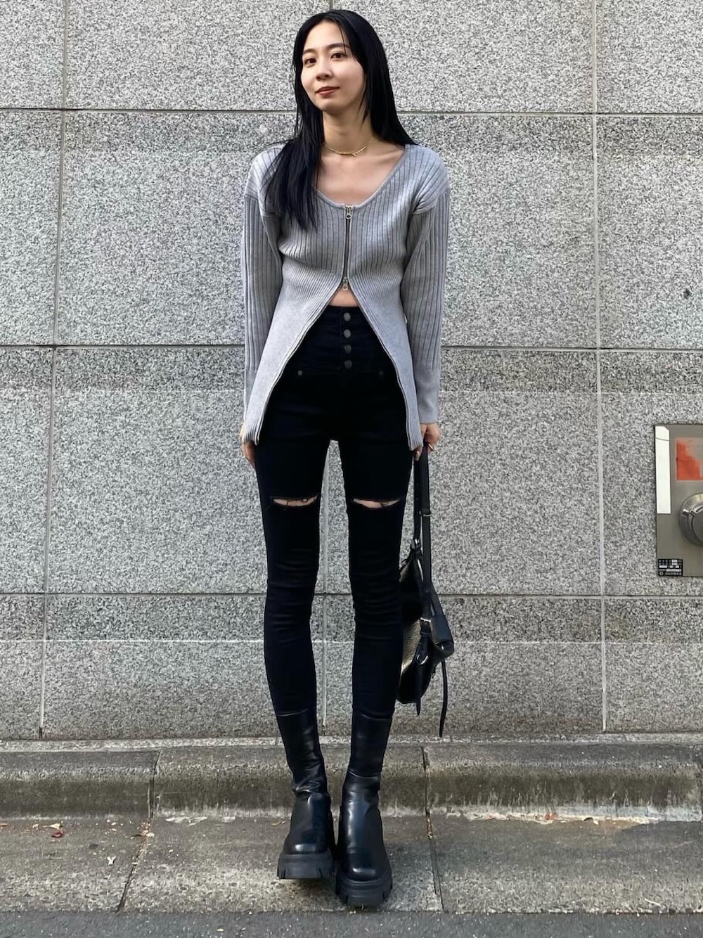 太ももあたりにデザインが入ったパギンスはブラックだとクールな印象がつくのでグレーと合わせて大人カジュアルにしてみました!