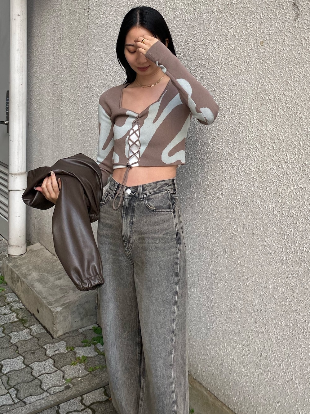 内藤和香(EMODA)のニット/セーター「フロントレースフィットニット」を使ったコーディネート