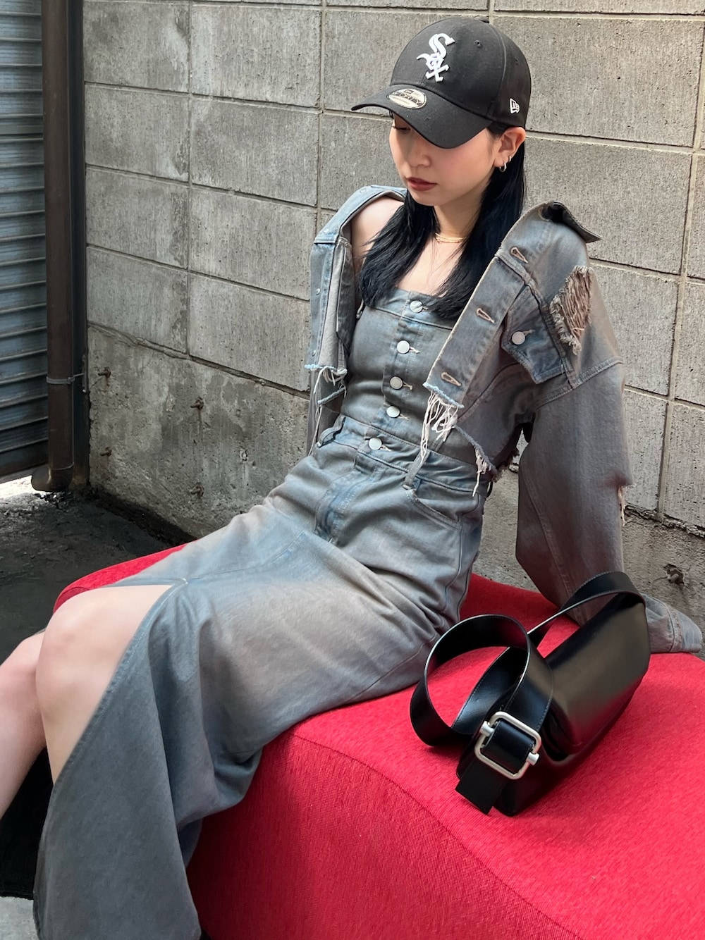 内藤和香(EMODA)のワンピース「ナローデニムワンピース」を使ったコーディネート