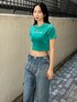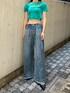 デニム×カラートップスの春らしいコーデ