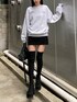 スウェット×ロングブーツコーデ