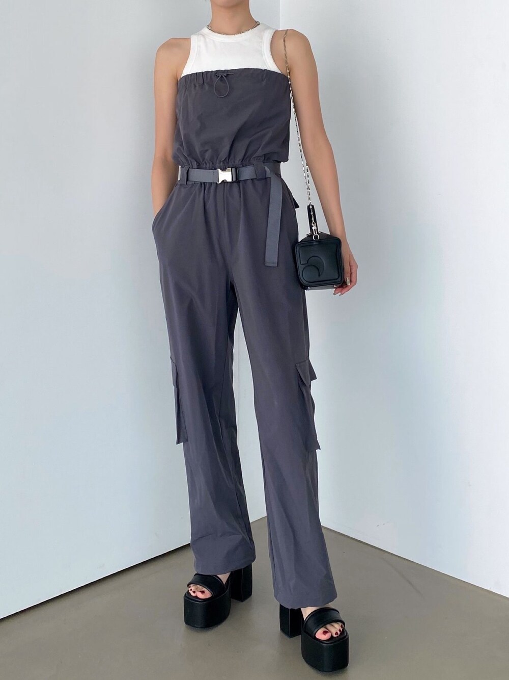 内藤和香(EMODA)のつなぎ/オールインワン「【WEB限定】ナイロンベアオールインワン」を使ったコーディネート