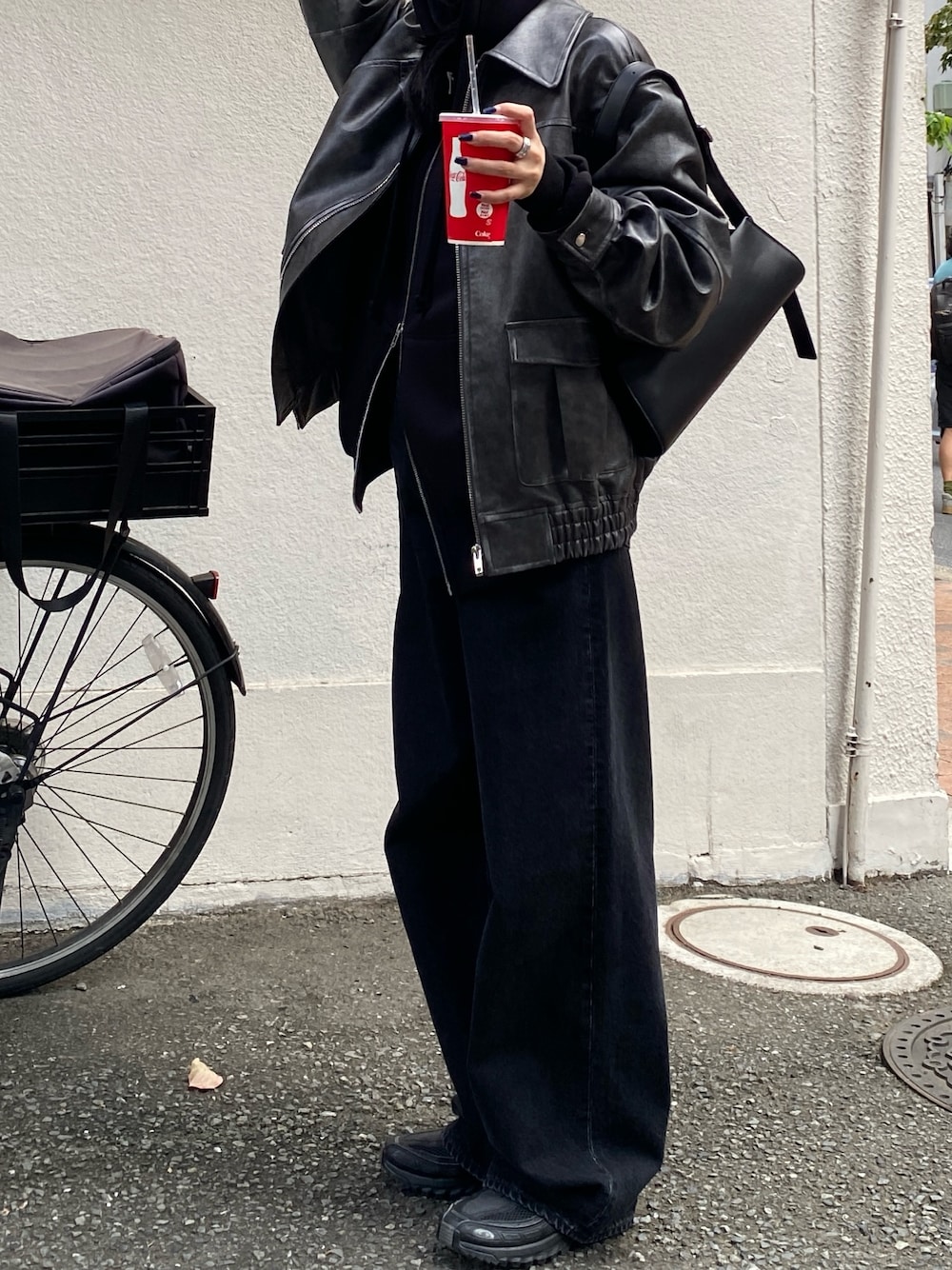 オールブラックコーデ アウター、パーカー、デニム、すべてゆったりとしたサイズ感なのでパーカーは逆開を利用してメリハリのあるコーデにしてみました! 合わせてるアウターはオーバーサイズなのでパーカーを着込んでもゆとりありました!フードを出して着るのがおすすめです。