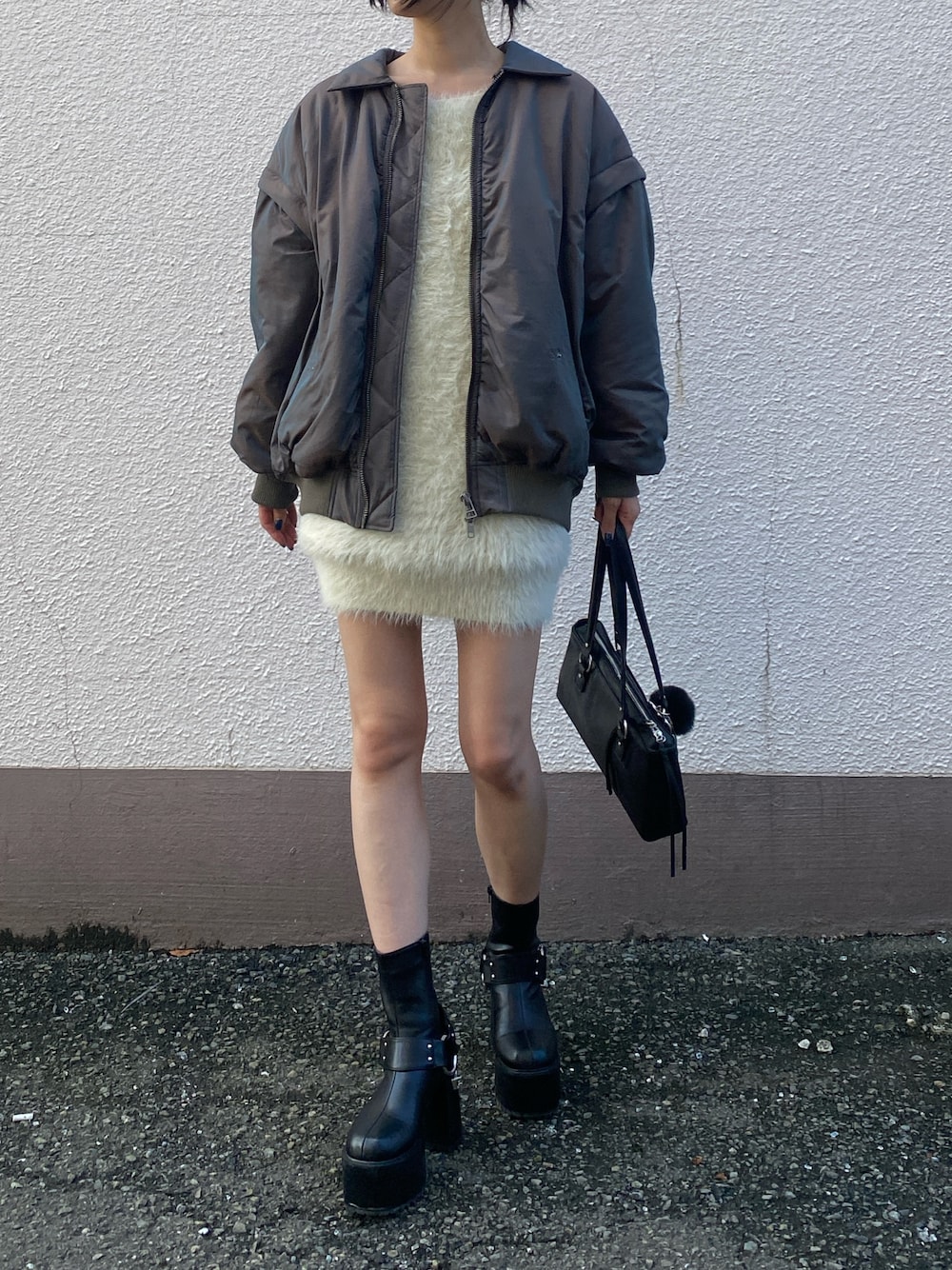 内藤和香(EMODA)のワンピース「2WAYシャギーミニワンピース」を使ったコーディネート