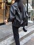 着用しているレザージャケットは丸みがあるのでレディライクに着ていただけます! また、169cmの私でヒップが隠れる大きさです!