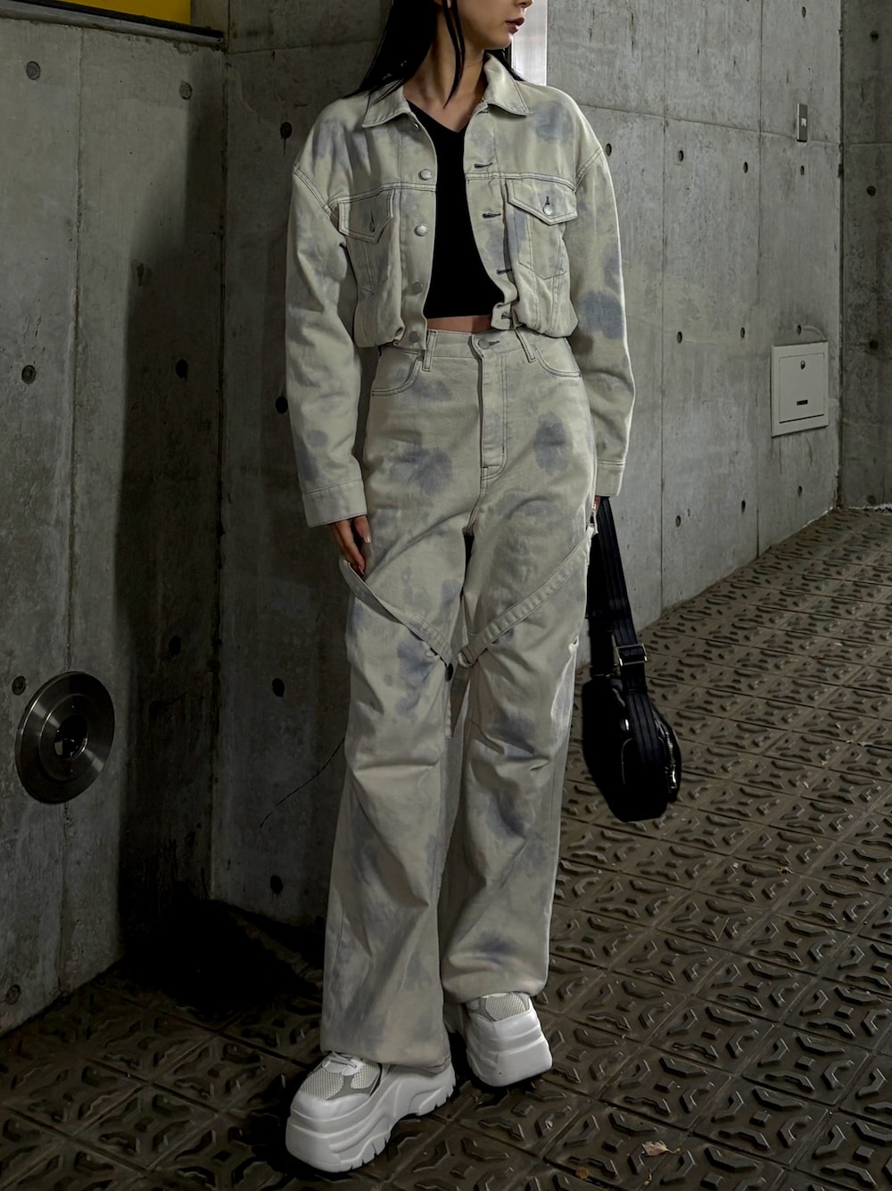おすすめデニムセットアップコーデ! 着用しているカーゴデニムは、169cmでSサイズを着用しています。 丈感は少し長めですがベルトがついているので幅感を調節することができ、低身長の方でも合わせやすいアイテムです!