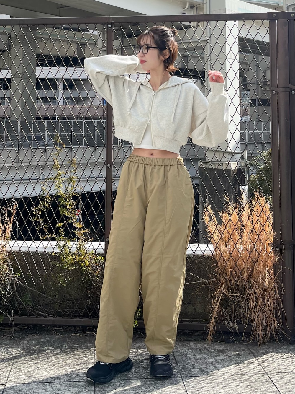 【tops】 ショート丈でダブルジップなので、着るだけで一気に今年っぽいコーデになります✨ 柔らかい素材で、さらっと着て頂けます🤍 【bottoms】 ウエストがゴムで、軽い素材なのでとても履きやすいパンツです🧡 ボリューム感も絶妙で、コーデのバランスが取りやすいです😊 身長163cm、M size着用で足に少し溜まる丈感です! 【shoes】 スニーカーのように楽だけどコーデをおしゃれにしてくれるシューズ👞 横幅も広めなので窮屈感なく履いていただけます🫶 普段24.5cmでL sizeがぴったりでした🙆🏻♀️