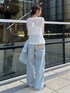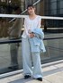 【tops】 レースの部分とテレコの部分があり、甘くなり過ぎないデザインのトップスです🤍 前開きなので、抜け感が出てすっきりと着ていただけます🫶 【bottoms】 ハイウエストで丈が長めなので、ずるっとカジュアルに履いていただけるデニムです👖 ヴィンテージ感のある色味が高見えします✨ 身長163cm、25inch着用でフラットシューズ履いて少し引きずる丈感です! 24inchだと引きずらないので、引きずりたくない方は24inchがおすすめです◎ 【outer】 ルーズ感のあるシルエットなので、きれい見えし過ぎずお出かけのシーンで使いやすいジャケットです🩵 肩パッドが入っていないので、使いやすいです😊 【shoes】 ベルトデザインがコーデのポイントになるフラットシューズ🖤 先の尖った形なので、コーデを大人っぽくしてくれます✨ 足の大きさ24.5cmでLsizeがぴったりでした!