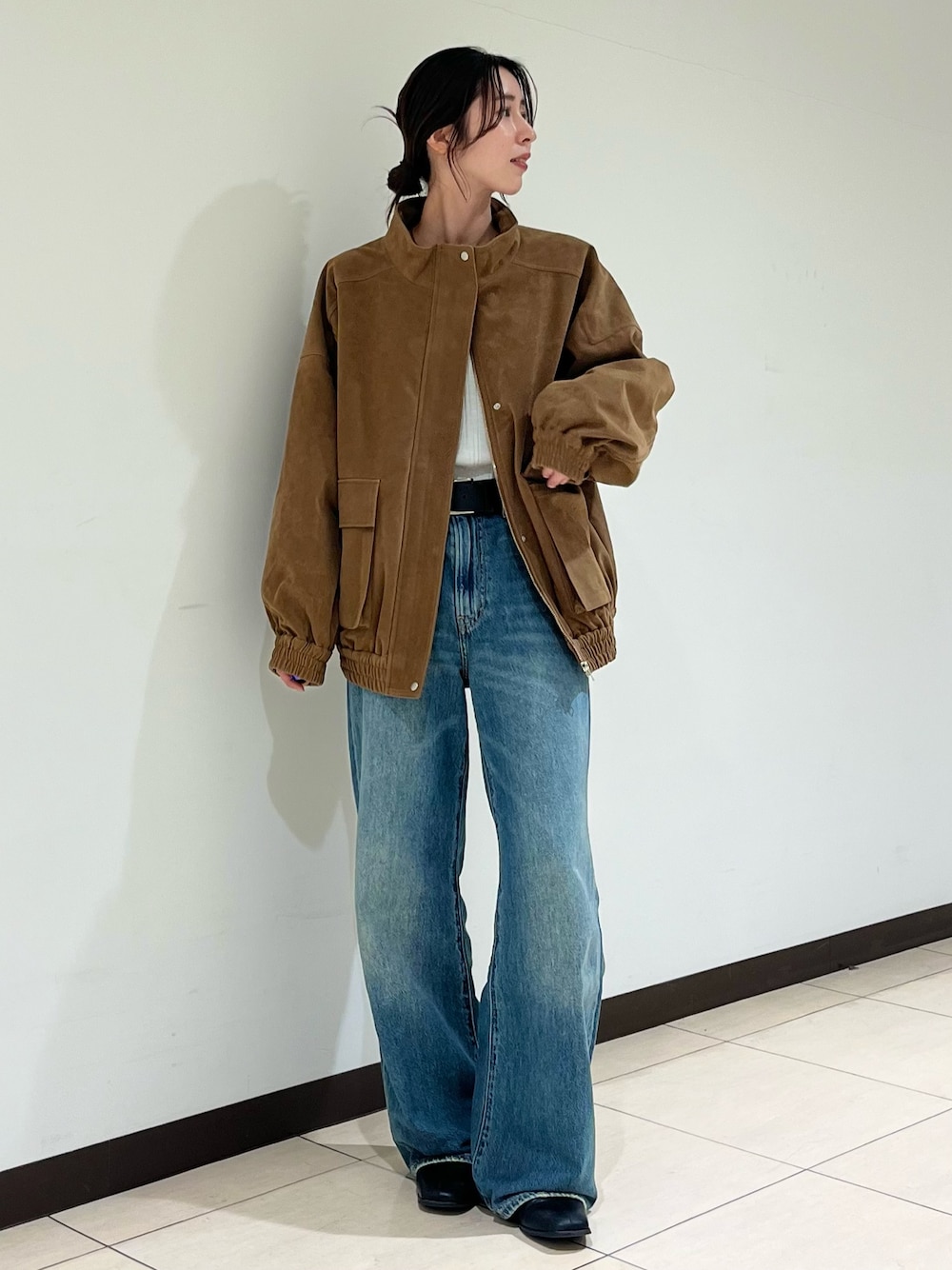 【outer】 スウェード生地で、一気に季節感を取り入れられるアイテム🍂 中綿も入っているのでしっかり暖かいです! お尻まで隠れるサイズ感と程よいボリューム感のあるシルエットです😊 【bottoms】 毎年大人気のLevi's別注アイテム✨ ハイウエストときれいなストレートシルエットで美脚見え間違いなしです🙆🏻♀️ 生地もとても柔らかく、履き心地抜群です💙 身長163cm、25inch着用で少し引きずる丈感です! 24inchだと引きずらずに履けました!