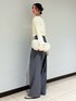 加藤早織(Ungrid)のTシャツ/カットソー「タックデザインオフショルロングスリーブTee」を使ったコーディネート