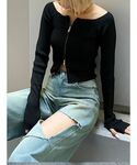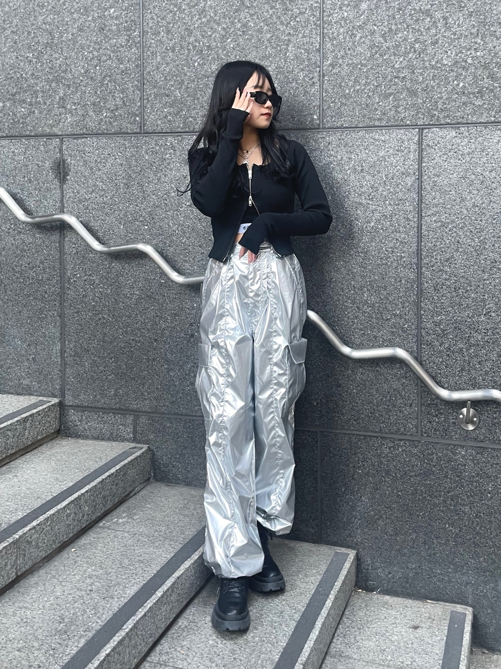 【tops】オフショルにもなる2wayトップス ୨ৎ ダブルジップなので私は開けてビスチェ合わせで♡♡ 【pants】素材が柔らかくてとっても履きやすいです👍🏻ドローコードが付いてるので絞ってブーツにinしても可愛いんです🩶