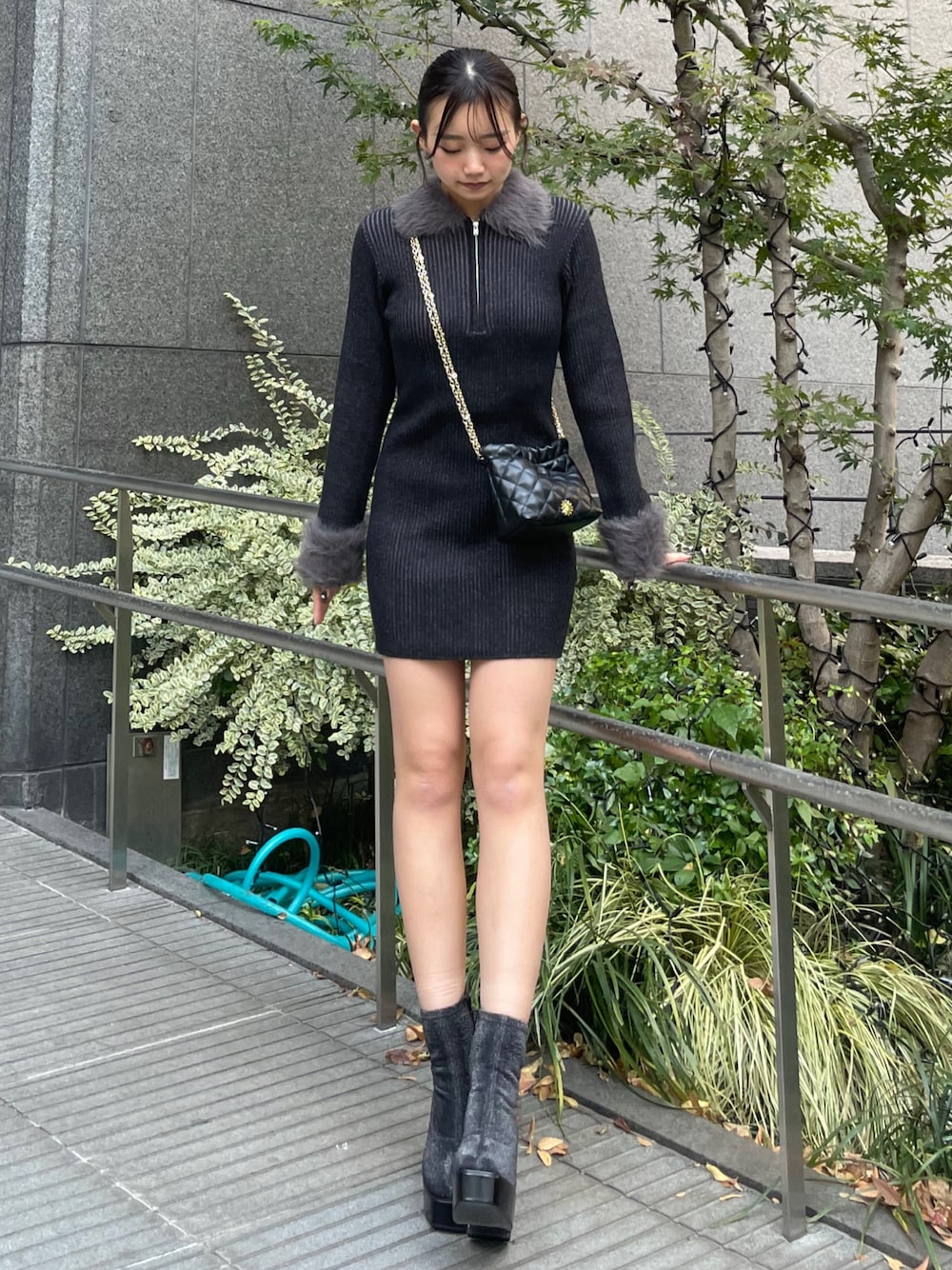 onepiece : 襟と袖にファーがついてるワンピース♡一気に冬感増すし腕も細く見せてくれて大優勝~ ❤️🔥 bag : シンプルなデザインにショルダー部分のビジューが映えて可愛いです🫶 shoes : ラメ感があるヒールは歩くだけでキラキラ⭐️素材が柔らかくて歩くのもちょー楽です🪽私は23.5cmでMsize着用してます!