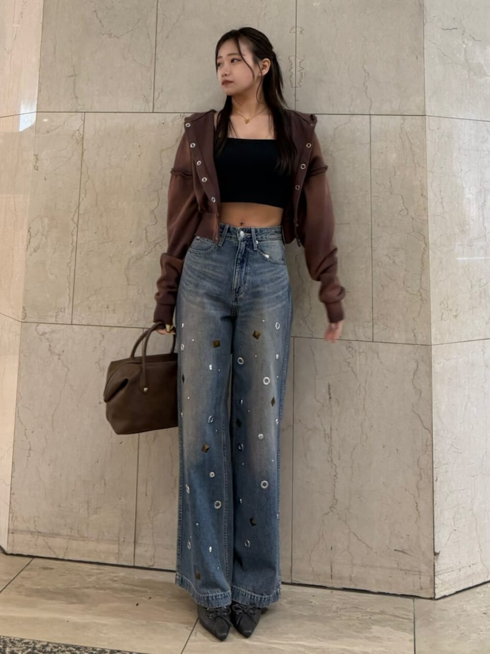 Tops :ボタンのパーカー個人的好み🤍フードが大きめで少し加工感があるのが可愛いです!中のインナーはMsizeを着用してます!丈感が変わるので160cmある方はMsizeオススメです! denim : デザインが可愛いワイドデニム👖ラフ感出したくてMsizeでローウエストで履いてます🫶ウエスト感変わるのでゆるっと履くのもかわいい~🎀