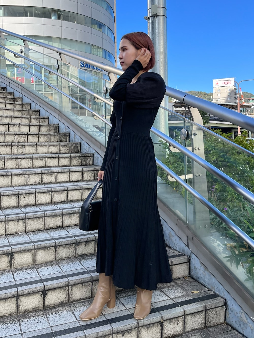 ブラックコーデ🖤 《ワンピース》 伸縮性があり、着心地の良さに驚きました!👀ウエスト位置できゅっと細く見せてくれるのでスタイルがとっても良く見えます🫶 《ブーツ》 中のクッションとお素材が柔らかく、長時間履いていても疲れません!先端の形もスクエアなので足のお悩みがある方も履いていただけます👢 《バック》 荷物見た目以上に沢山入ります!👀 ショルダーにもできるため、ママさんのお出かけの際のバックにおすすめです✔️