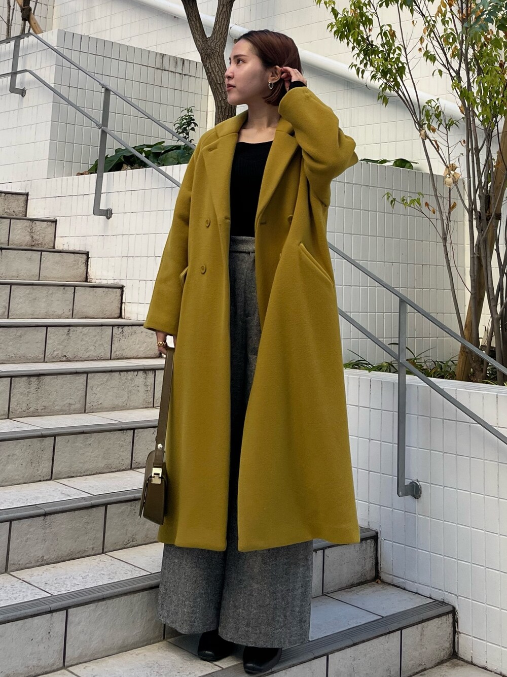 カラーコーデ🖤💛 《コート》 長めが好きなので159cmでMサイズ着用です。コートを着ていると思わせないほど軽い着心地です👀しっかり首元まで締めれるようになっていて防寒対策もしっかりできます! 《バック》 持ち手の部分が楽に伸ばしていただけます!ショルダーにしても可愛いです😌 どのカラーも差し色になって、シンプルなお洋服を一気におしゃれに見せてくれます❤️🔥 《トップス》 伸縮性があり着心地抜群🖤冬のシンプルなお洋服のアクセントになるようなデザインがお洒落です✨✨ 《パンツ》 159センチSサイズでこの丈感なので、高身長さんにおすすめのパンツです✨ 暖かくて冬はこれしか履けなくなりそうです😂