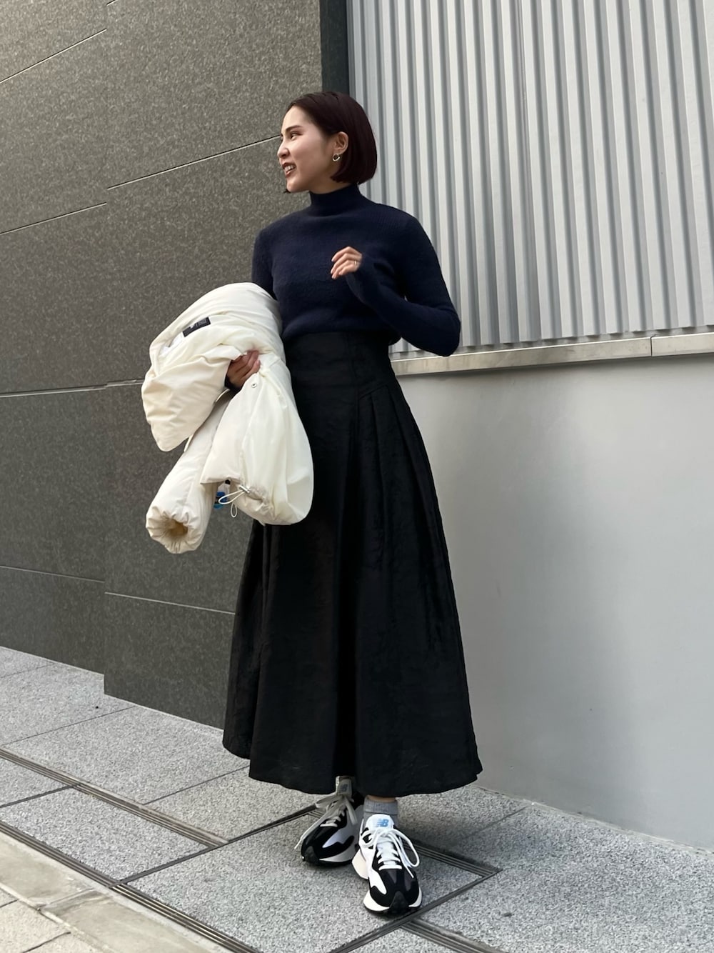 大人カジュアル🤍🖤 《トップス》 モチっとしたふわふわの生地がとっても暖かくて、インナーに着ても一枚で着ても様になるシャギーニット💓伸縮性のある生地で着心地最高でした🥹✨✨ 《スカート》 締め付け感などは少なく、シャカシャカっとした生地感でオールシーズン着回していただけます🖤 《スニーカー》 軽くて柔らかく、履き心地が良いです! シンプルなデザインなので、どんなお洋服にも合わせていただけます! 《ダウン》 軽くて暖かいショート丈のダウン!持ち運びもしやすくママさんにとってもオススメです✨✨